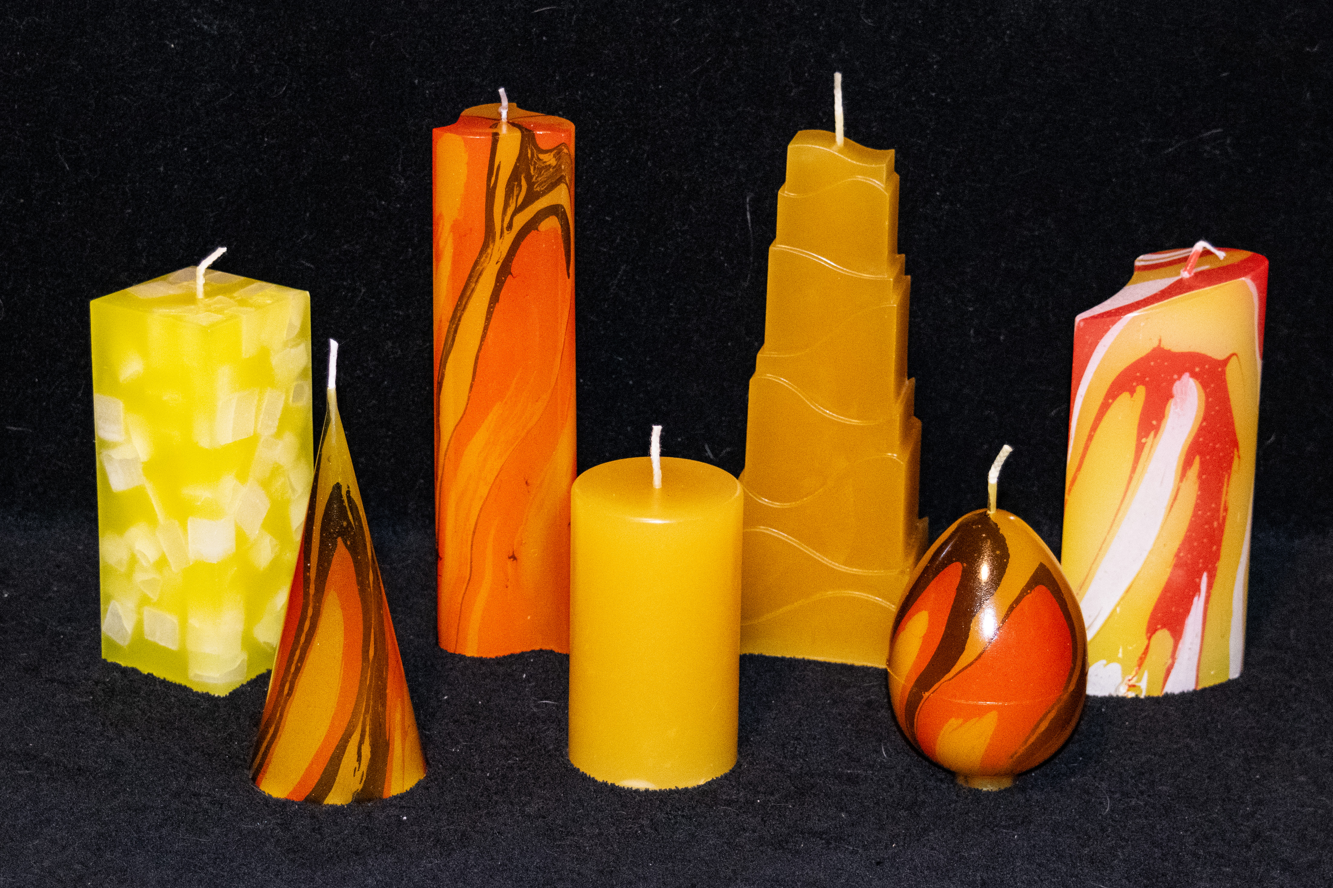2023 habe ich erstmals probiert, meine Kerzen auf Hobby- und Adventsmärkten zu verkaufen. Darüber hinaus können Kerzen nach Wunsch auch direkt bei mir bestellt werden, allerdings haben Leute oft Schwierigkeiten, sich "beliebige" Form- und Farb-Kombinationen vorzustellen. Dadurch kam die Idee, alle möglichen Varianten fotografisch zu dokumentieren, woraus schlussendlich 2024 diese Seite entstand.